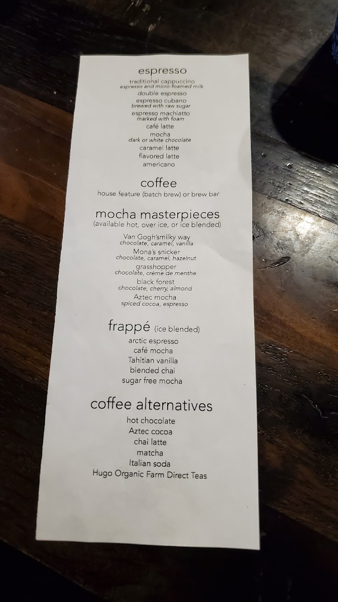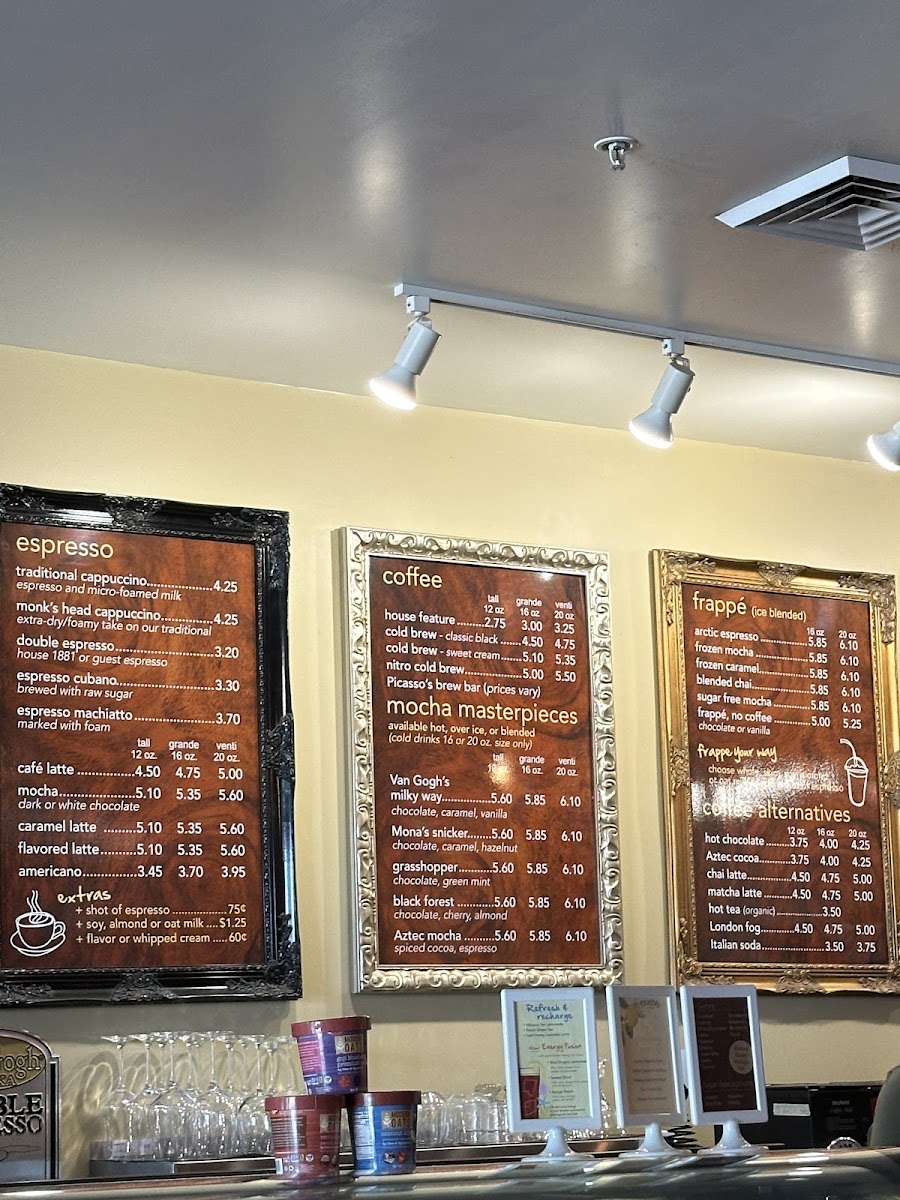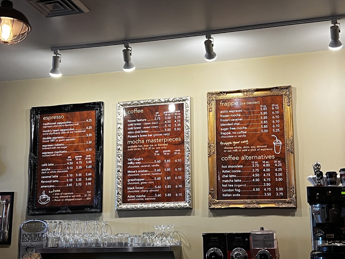 Located in the heart of St. Charles, Missouri, Picasso's Coffee is a vibrant coffee haven that masterfully combines rich flavors and artistic flair. Their menu boasts a selection of exquisite specialty mochas, each a masterpiece in its own right. Highlights include the indulgent Mona's Snicker, a delicious blend of chocolate, caramel, and hazelnut, and the spiced Aztec Mocha, offering a kick of cocoa and espresso.